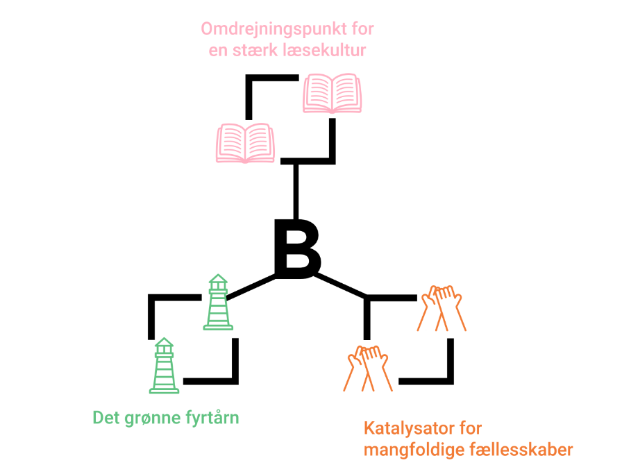 Vi vil være en del af borgernes hverdagsliv og skabe værdi gennem læseglæde, fællesskaber og bæredygtighed.